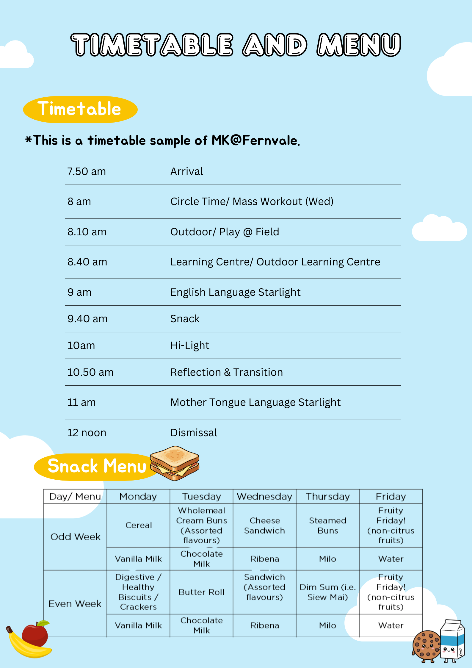 Timetable & Menu